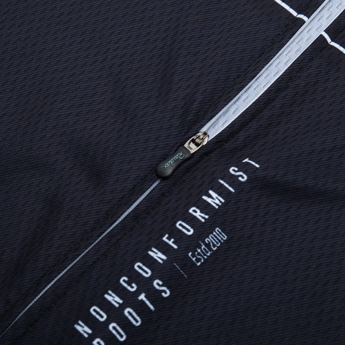 A mix of highly breathable and quick–drying fabric, tailored specifically for the track.